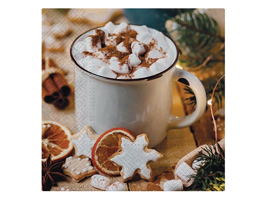Papírový vánoční ubrousek s motivem zimního horkého nápoje, sušených pomerančů a perníčků je vyroben z velmi kvalitního třívrstvého papíru. Tento ubrousek je ideální pro využití při vánočním stolování. Lze ho použít během svátečních večeří, oslav s rodinou a přáteli, nebo při servírování dezertů...