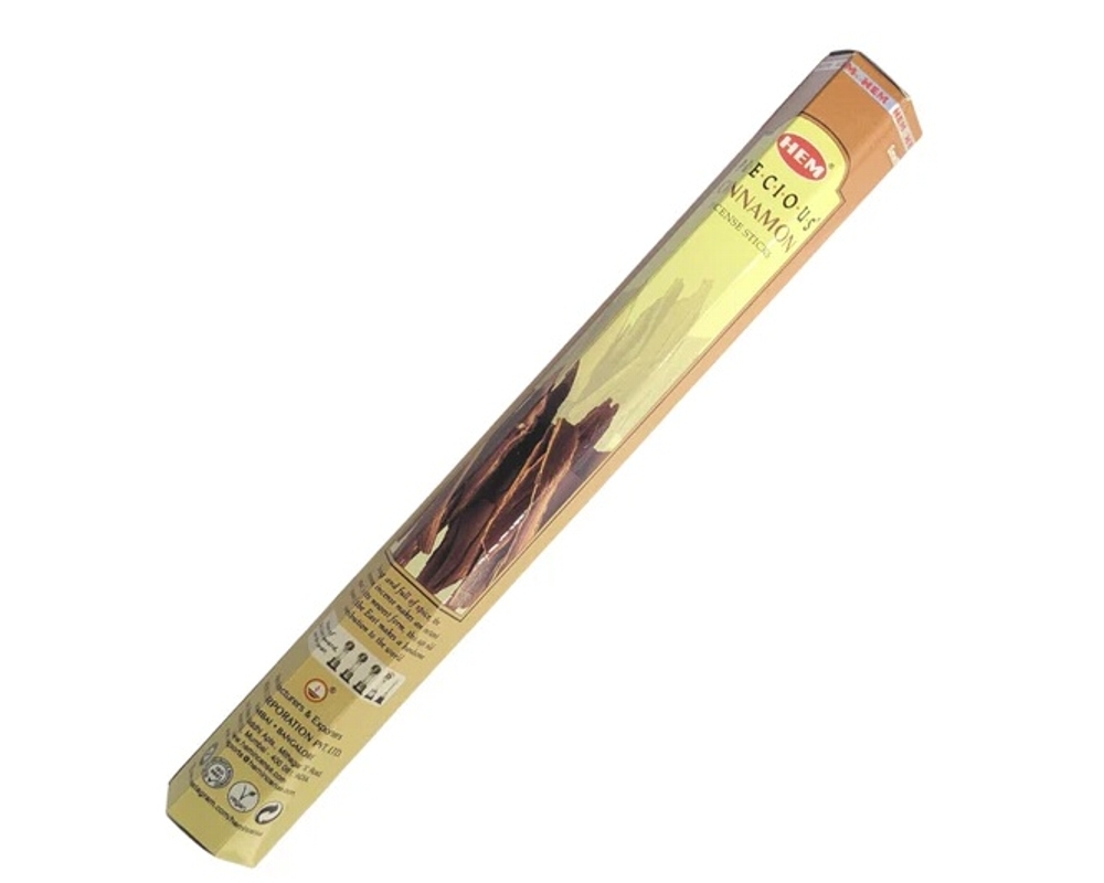 Indyjskie kadzidełka z patyczkiem bambusowym o popularnym zapachu cynamonu. Zapach jest przyjemny, intensywny. Idealne nie tylko w przedświątecznym zagonieniu. CYNAMON - afrodyzjak, ochrona, uzdrowienie. Cynamon to aromatyczna kora cynamonowców, wiecznie zielonych drzew tropikalnych. Ma też właściwości lecznicze; produkuje się z niego olejki eteryczne, nalewki, olej. Ma korzono-słodki smak i przyjemny zapach, który nadaje głównie zawarta w nim substancja cynamaldehyd. Zapach przynosi inspirację i dodaje życiowej siły, leczy słabości, melancholię i wyczerpanie psychiczne. Pudełko zawiera 20 sztuk kadzidełek z patyczkiem bambusowym. Skład: składniki ziołowe, olejki zapachowe. Umieść kadzidełko w podstawce, zapal i pozwól mu się tlić. Nie pozostawiaj palącego się bez nadzoru.