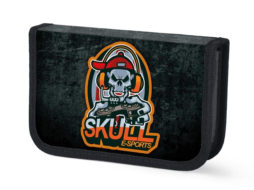 Szkolny jednopoziomowy niewyposażony piórnik z dwoma klapkami z motywem Games. Klapki mają po zewnętrznej stronie praktyczną przezroczystą kieszonkę przeznaczoną na plan lekcji itp. Piórnik zawiera 23 pętelki na kredki, ołówki i długopisy oraz 3 większe pętle np. na nożyczki, gumkę, temperówkę lub linijkę. Bardzo łatwo się zamyka dzięki dużemu zamkowi błyskawicznemu. Jest bez wątpienia niezbędnym elementem wyposażenia każdego ucznia.
