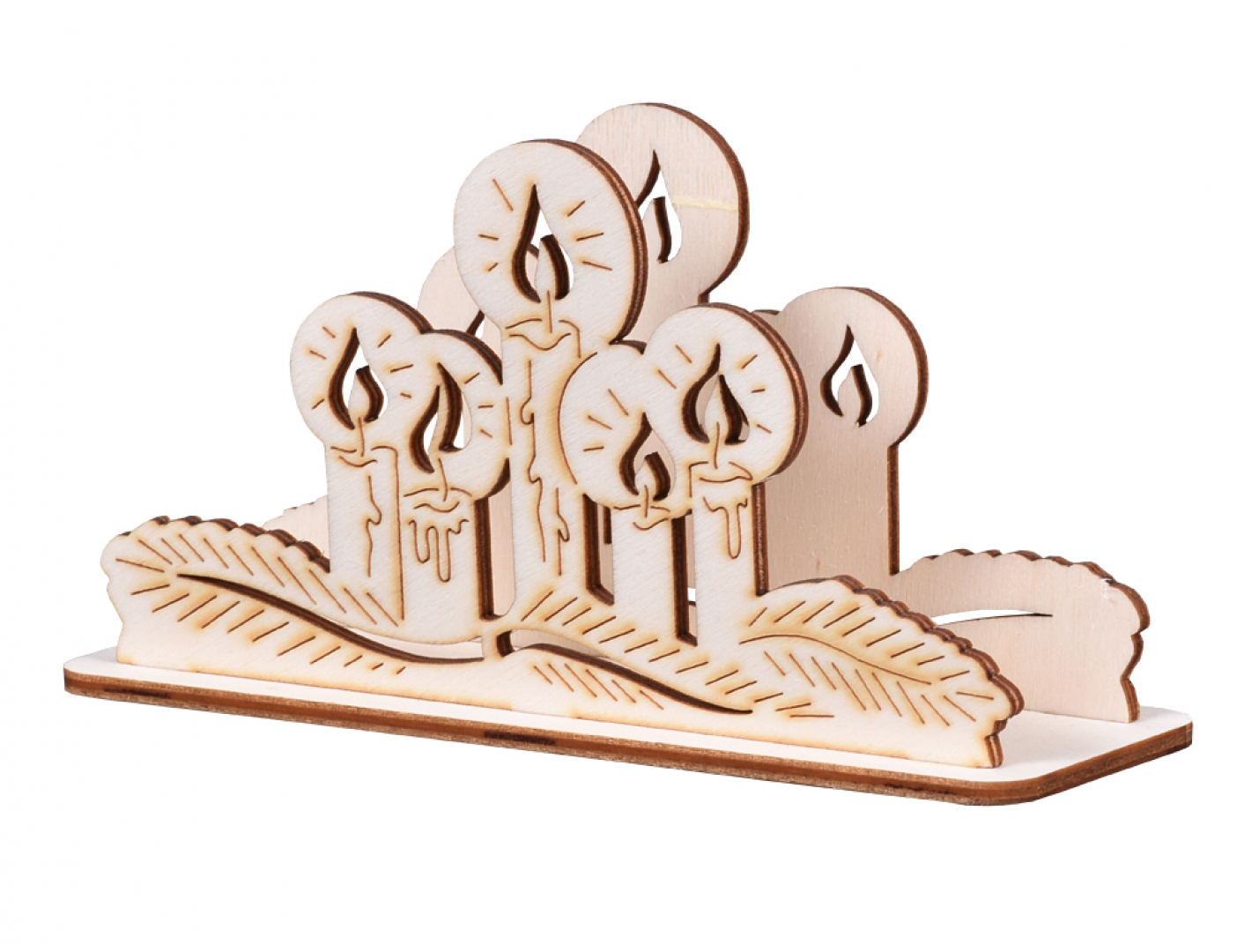 Vánoční dřevěný stojánek na ubrousky s motivem svícnu s 5 svíčkami. Český výrobek. Vánoční stojánek na ubrousky Vám krásně ozdobí např. Vaši vánoční tabuli. Materiál: topolová překližka. Rozměry: šířka: 15 cm, výška: 7 cm. Barva: přírodní. przeczytaj całość