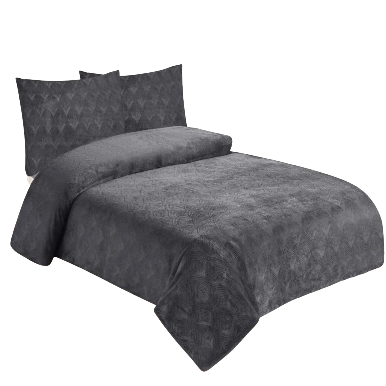 Jahu Povlečení mikroflanel struktura Listy tmavě šedé 140x200, 70x90 cm