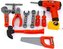 zawiera 90 szt. akcesoriów - kuferek, stół warsztatowy, wiertarkę, narzędzia i inne dodatki,