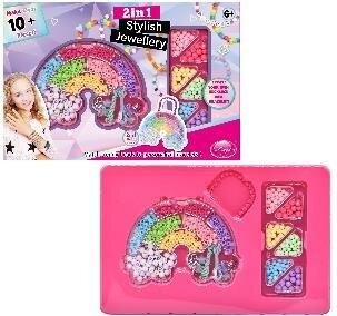W zestawie: plastikowe pudełko w kształcie serca z uchwytem, 12 rodzajów koralików, 2 sznurki, 4 zawieszki, wym. opak. 30 x 19,8 x 3,5 cm, przeczytaj całość