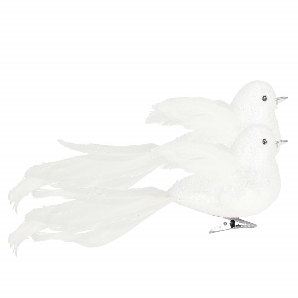 Vánoční ozdoby - Ptáčci, bílí, sada 2ks