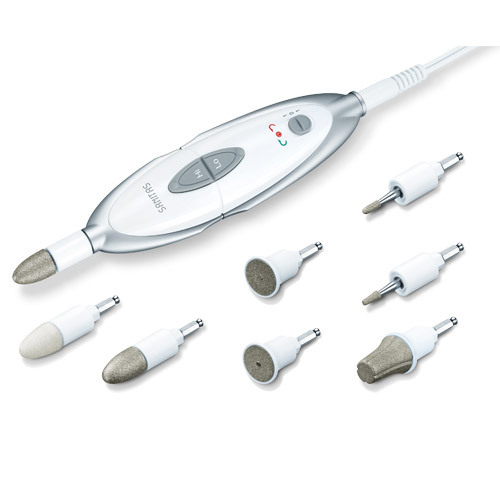 sada na manikúru / pedikúru2 rychlostichod doleva i dopravarychlost 3800 + 4600 ot./min7 safírových nástavcůpouzdrosíťový1 – Safírový disk, tenkýJemná zrnka v safírovém disku pilují a pečují onehty.Zvláštní na tomto safírovém disku je, že rotuje pouzevnitří disk a vrchní okraj zůstává pevný. To...