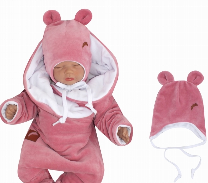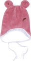 Z&Z Velurová čepice na zavazování s oušky, pudrová; 56/62 (0-3m)