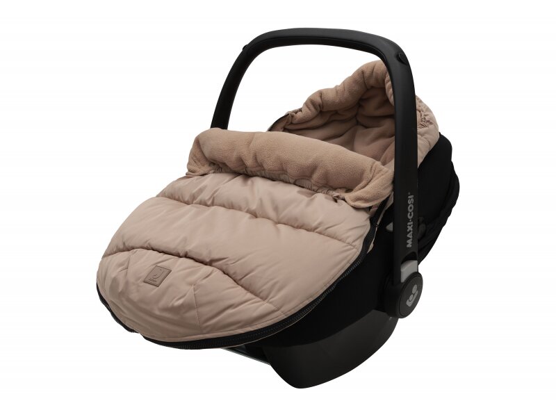 Stylowy śpiworek do fotelika samochodowego ma zewnętrzną część z przyjemnego pikowanego materiału z wypełnieniem oraz wewnętrzną stronę z miękkiego polaru dla maksymalnego komfortu i komfortu cieplnego dziecka w foteliku. Otwory w tylnej części śpiworka umożliwiają przeciągnięcie pasów fotelika, dzięki czemu możesz mieć śpiworek w foteliku gotowy, a po jego rozpięciu wystarczy tylko włożyć dziecko do fotelika i zapiąć. W zależności od temperatury w samochodzie lub na zewnątrz śpiworek można zapiąć lub rozpiąć za pomocą zamków błyskawicznych, aby zapewnić dziecku komfort termiczny. Zapięcie na zatrzaski w górnej części śpiworka umożliwia stworzenie kaptura chroniącego główkę dziecka np. podczas przenoszenia dziecka w foteliku na zewnątrz. Śpiworek nadaje się do fotelików kategorii 0m+ (0-13 kg) z 3-punktowymi lub 5-punktowymi pasami. Można go również używać dla niemowląt od urodzenia w wózku. Materiał zewnętrzny: 100% poliester, materiał wewnętrzny: 100% poliester, wypełnienie: 100% poliester. Wymiary: 42 x 82 cm