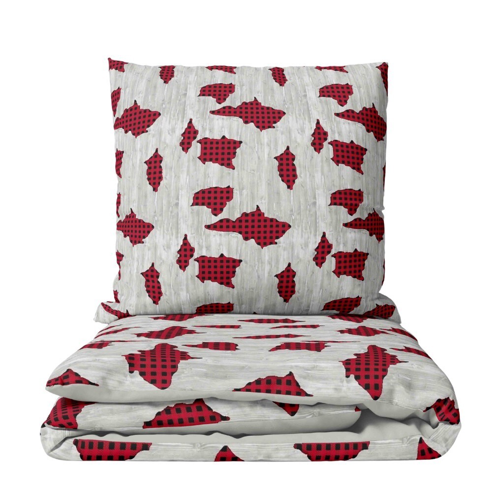 Mikroflanelové povlečení, rozměr 140x200 + 70x90 cm, ZÁPLATY, barva červená/šedá przeczytaj całość