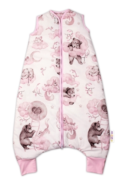 Teplejší spací vak s nohavičkami Baby Nellys, Zvířátka na mráčku, růžový, vel. M; M (2,5r-6l)