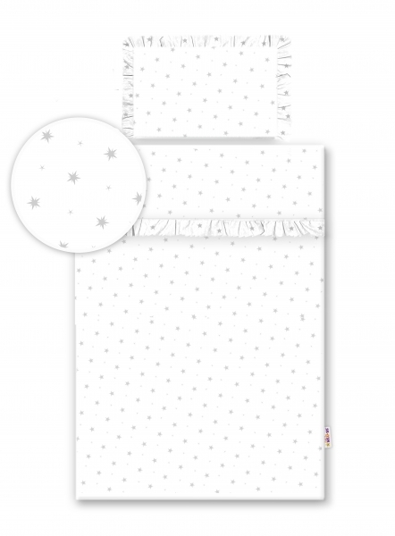Baby Nellys 2-dílné bavlněné povlečení s volánky - bílé/hvězdičky šedé, 135x100 cm; 135x100