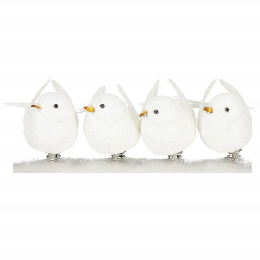 Vánoční ozdoby - Ptáčci, bílí, sada 4ks