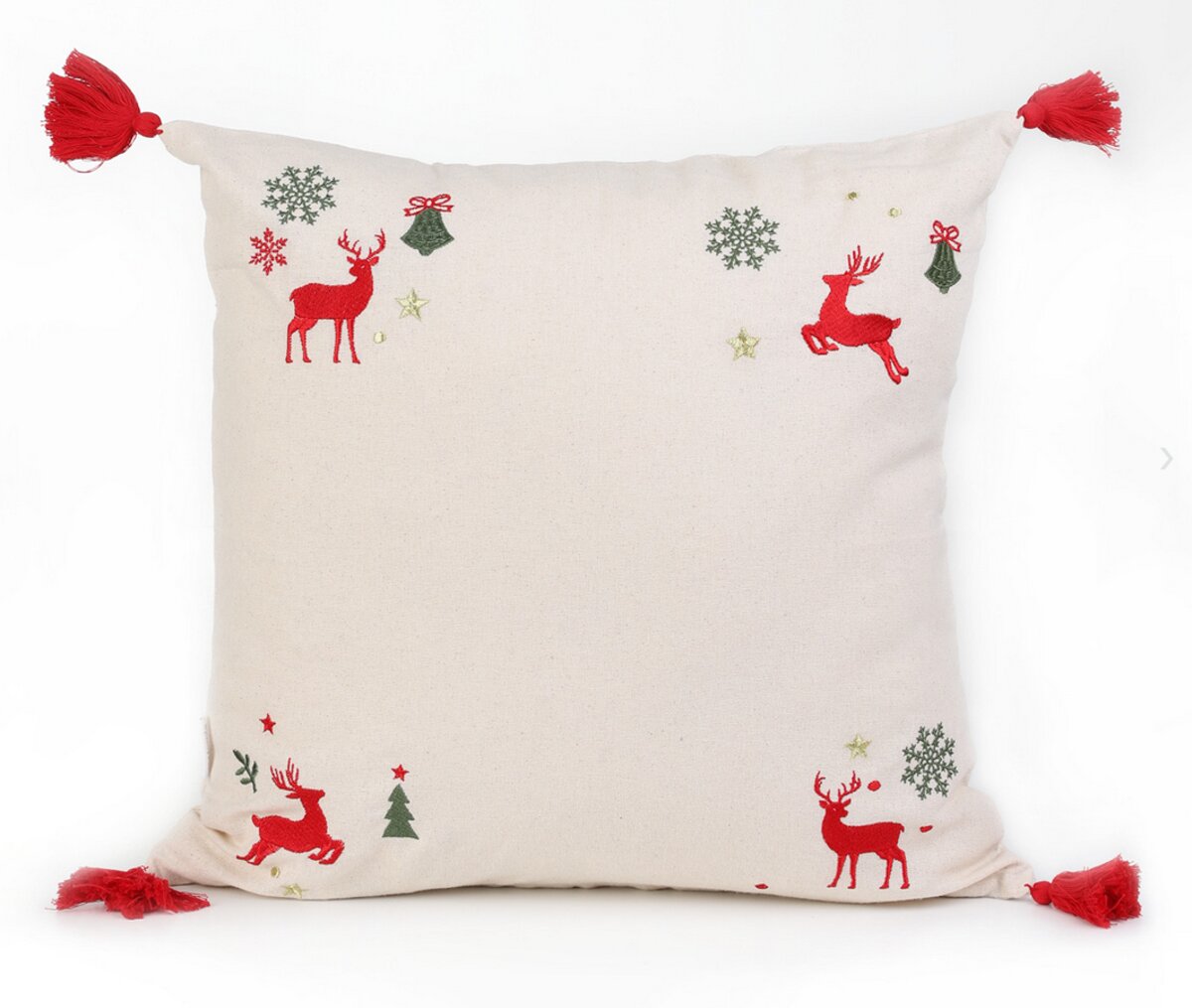 Vánoční bavlněný polštář | MARAL | béžová s třásněmi | 45x45 cm | 865768