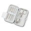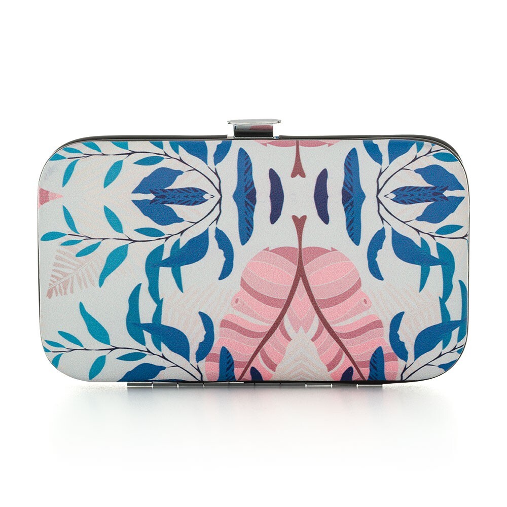 Cestovní manikúrní set 6 ks v barevném provedení. Stříbrná sada obsahuje nůžky, kleštičky na nehty, zkosenou pinzetu, pilník, manikúrní tyčinku a zatlačovač kůžičky. Ideální velikost do kabelky či na cesty. przeczytaj całość