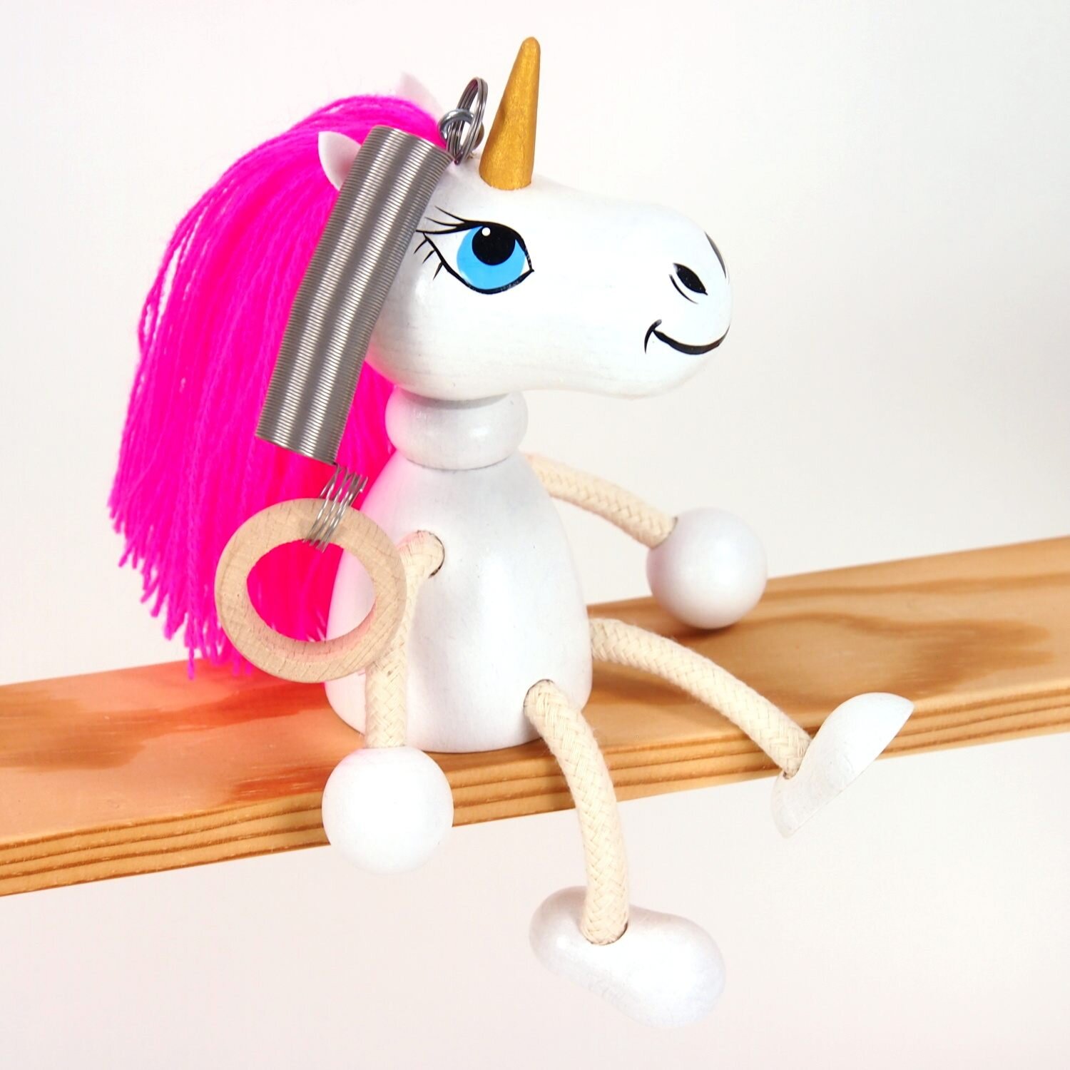JEDNOROŽEC modré oči - dřevěná figurka na pružině