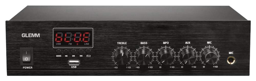 Kompaktní rozhlasová ústředna pro 100V s možností nízkoimpedančního zapojení 4-16Ω. Obsahuje vstupy: 1x MIC (jack6,3mm), 1x AUX (2x RCA), 1x pro FM anténu. Výstupy: 1x LINE (2x RCA), 4-16ohm/100V. Má vestavěný MP3 přehrávač s displejem, USB konektorem, Bluetooth připojením a FM tunerem. Má 2-pásmové korekce a samostanou regulaci hlasitosti pro každý vstup. Zesilovač umožňuje použít také napájení 24V DC.