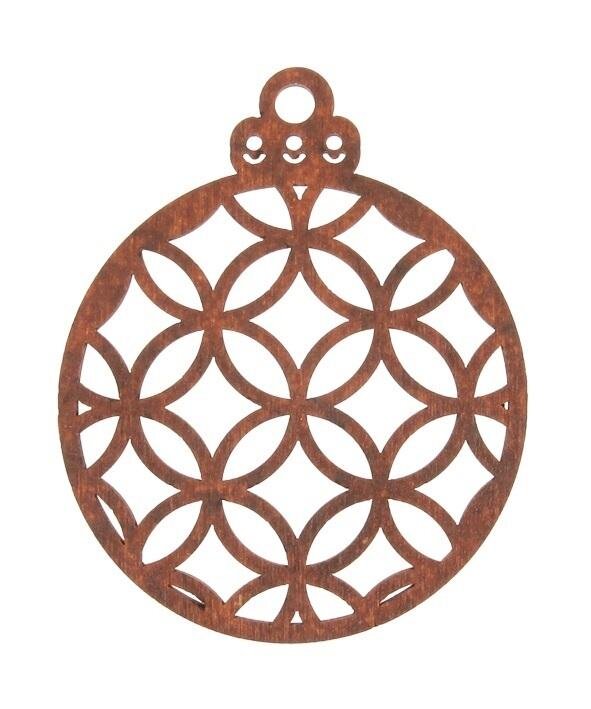 Drewniana bombka ażurowa malowana. Średnica 8cm, wysokość całkowita 10cm. W opakowaniu 3szt przeczytaj całość
