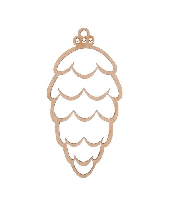 Drewniana bombka w kształcie szyszki naturalna. Wysokość całkowita 9cm, szerokość 4,5cm. W opakowaniu 3szt przeczytaj całość