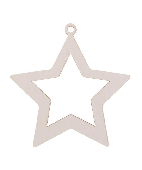 Drewniana bombka w kształcie gwiazdy biała. Średnica 8cm, wysokość całkowita 9cm. W opakowaniu 3szt przeczytaj całość