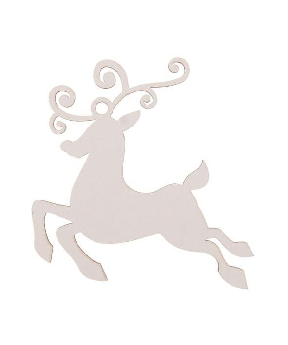 Drewniana bombka zawieszka na choinkę w kształcie renifera biała. Szerokość 8,5cm, wysokość 8cm. W opakowaniu 3szt. przeczytaj całość