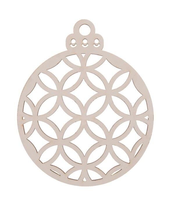 Drewniana bombka ażurowa biała. Średnica 8cm, wysokość całkowita 10cm. W opakowaniu 3szt przeczytaj całość