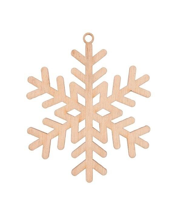 Drewniana śnieżynka w kształcie płatku śniegu naturalna. Średnica 8cm, wysokość całkowita 9cm. W opakowaniu 3szt przeczytaj całość