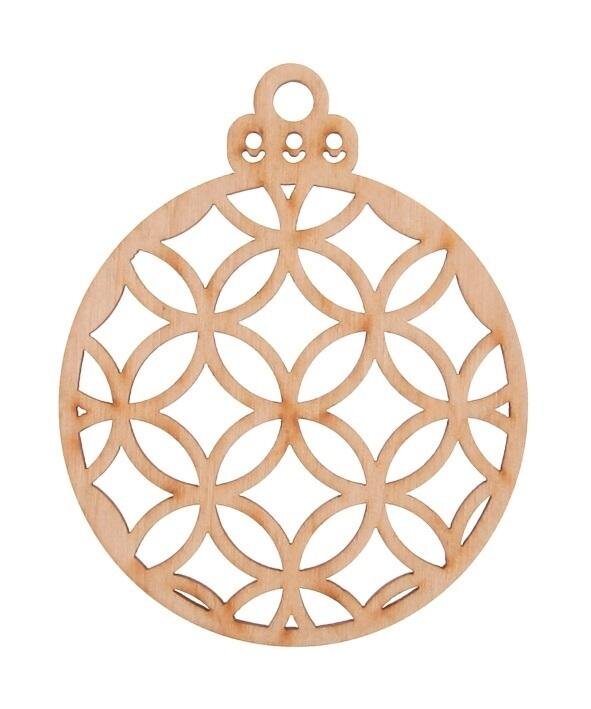 Drewniana bombka ażurowa naturalna. Średnica 8cm, wysokość całkowita 10cm. W opakowaniu 3szt przeczytaj całość