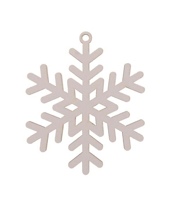 Drewniana śnieżynka w kształcie płatku śniegu biała. Średnica 8cm, wysokość całkowita 9cm. W opakowaniu 3szt przeczytaj całość