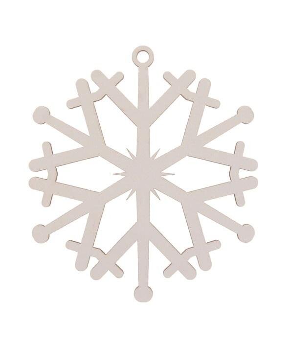 Drewniana śnieżynka biała. Średnica 8cm, wysokość całkowita 9cm. W opakowaniu 3szt przeczytaj całość