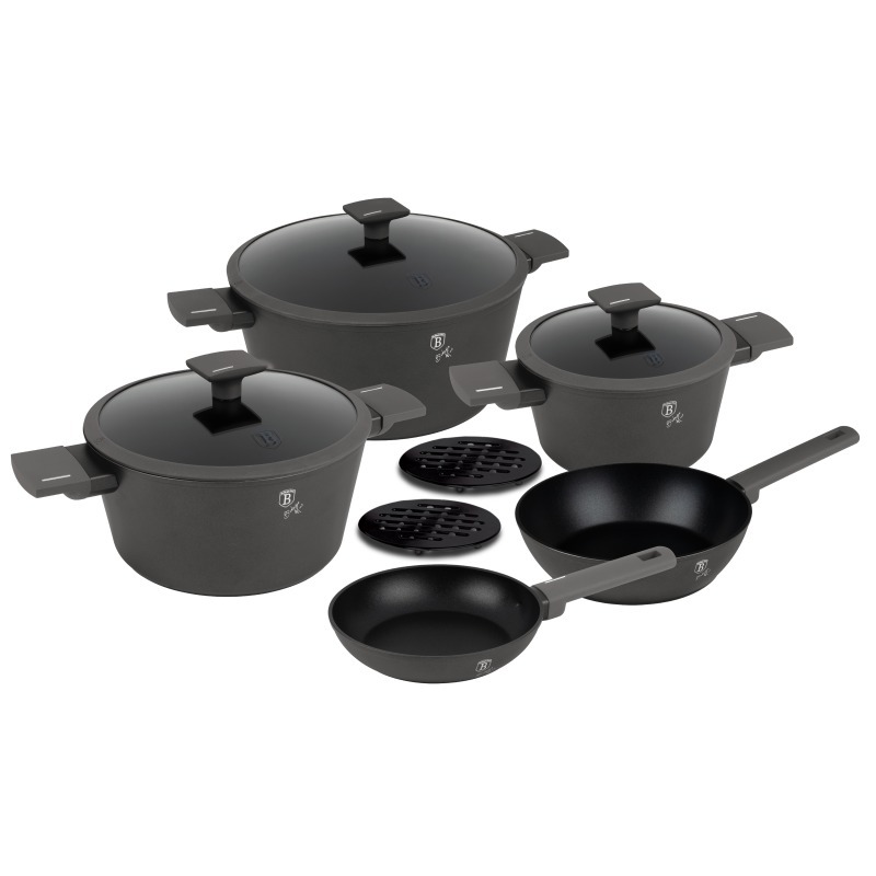 Materiál: kovaný hliník s nepřilnavým povrchem titanPro- Součástí balení je:- Pánev pr. 204,5 cm 1,0 l.- Hluboká pánev pr. 246,5 cm 2,3L- Kastrol s cedící poklicí pr. 2010,4 cm 2,5L- Kastrol s cedící poklicí pr. 2411,8 cm 4,1L- Kastrol s cedící poklicí pr. 28*12,4 cm 6,1L- 2 ks černé...