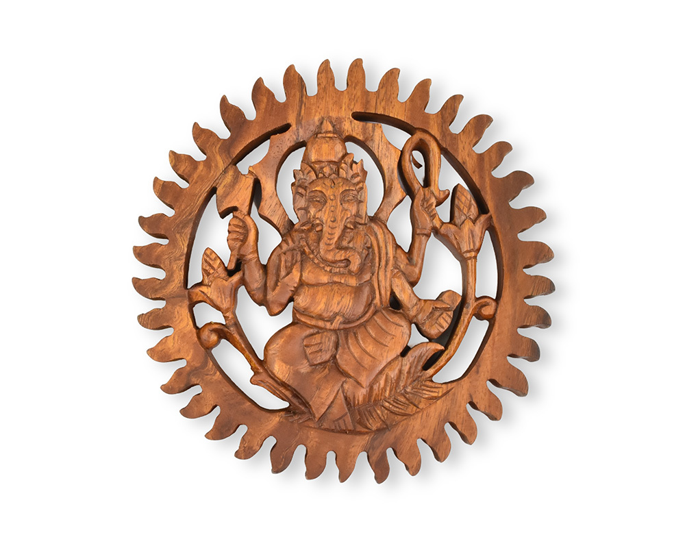 Závěsná dřevěná dekorace Ganesha - 20 cm