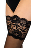 Damskie samonośne pończochy z kolekcji Lady B PASSION HOLD UPS o grubości 20 DEN to delikatne pończochy zdobione ekstra wysoką koronką. Wysokość koronki wynosi 13 centymetrów i posiada u górnej krawędzi 2 szerokie silikonowe paski, które przylegają do skóry i utrzymują pończochy na swoim miejscu. Pończochy są dzięki temu samonośne. Trwałe w kształcie i elastyczne dzięki elastanowi, wykonane z wysokiej jakości dzianiny. Eleganckie pończochy są bardzo uwodzicielskie, odpowiednie dla wszystkich pewnych siebie kobiet i dziewczyn niezależnie od wieku. Bez wzmocnionych palców i dodatkowo przyjemnie perfumowane. Zapakowane są w dodatkowy woreczek w kopercie.