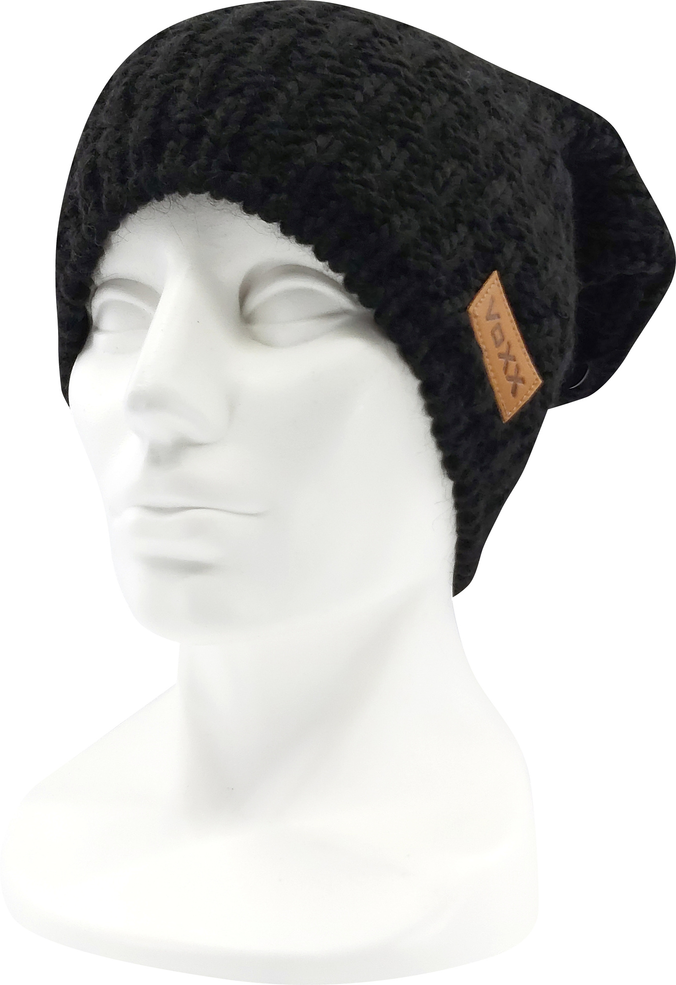dámská pletená čepice s podílem vlny merino, zdobená koženou etiketou VoXX®, vnitřní strana mikrofleece przeczytaj całość