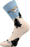 Damskie frotte skarpetki Boma® OWLANA z uroczym motywem sów. Skarpetki mają dużą zawartość bawełny i elastycznego elastanu. Dzięki temu skarpetki są przyjemne w dotyku, wygodne w noszeniu, dobrze pochłaniają wilgoć i jednocześnie dobrze trzymają się na stopie. Ciepłe i rozgrzewające skarpetki wykonane są z delikatnego frotte, są więc bardzo miękkie, odpowiednie do codziennego noszenia w chłodne i ponure dni. Motyw sów jest podzielony na noc i dzień, w parze każda skarpetka jest inna; jeśli chcesz mieć dwie takie same skarpetki, zamów dwie pary.