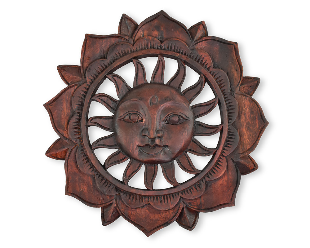 Závěsná dřevěná dekorace Slunce tmavá - 30 cm