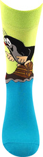 Dámské a pánské vtipné ponožky Boma® KR 211 jsou slabé ponožky s roztomilým obrázkem Krtka od malíře Zdeňka Milera. Vraťte se do říše pohádek a pořiďte si Krtečka do svého šatníku. Klasické ponožky s vysokým podílem bavlny oživí váš outfit, ať už nosíte oblek nebo džíny. 200 jehlový úplet je velmi jemný, vypletený obrázek má díky tomu detaily velmi ostré.