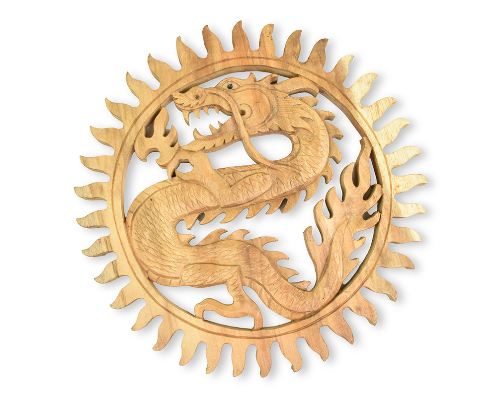 Závěsná dřevěná dekorace Drak světlá - 30 cm