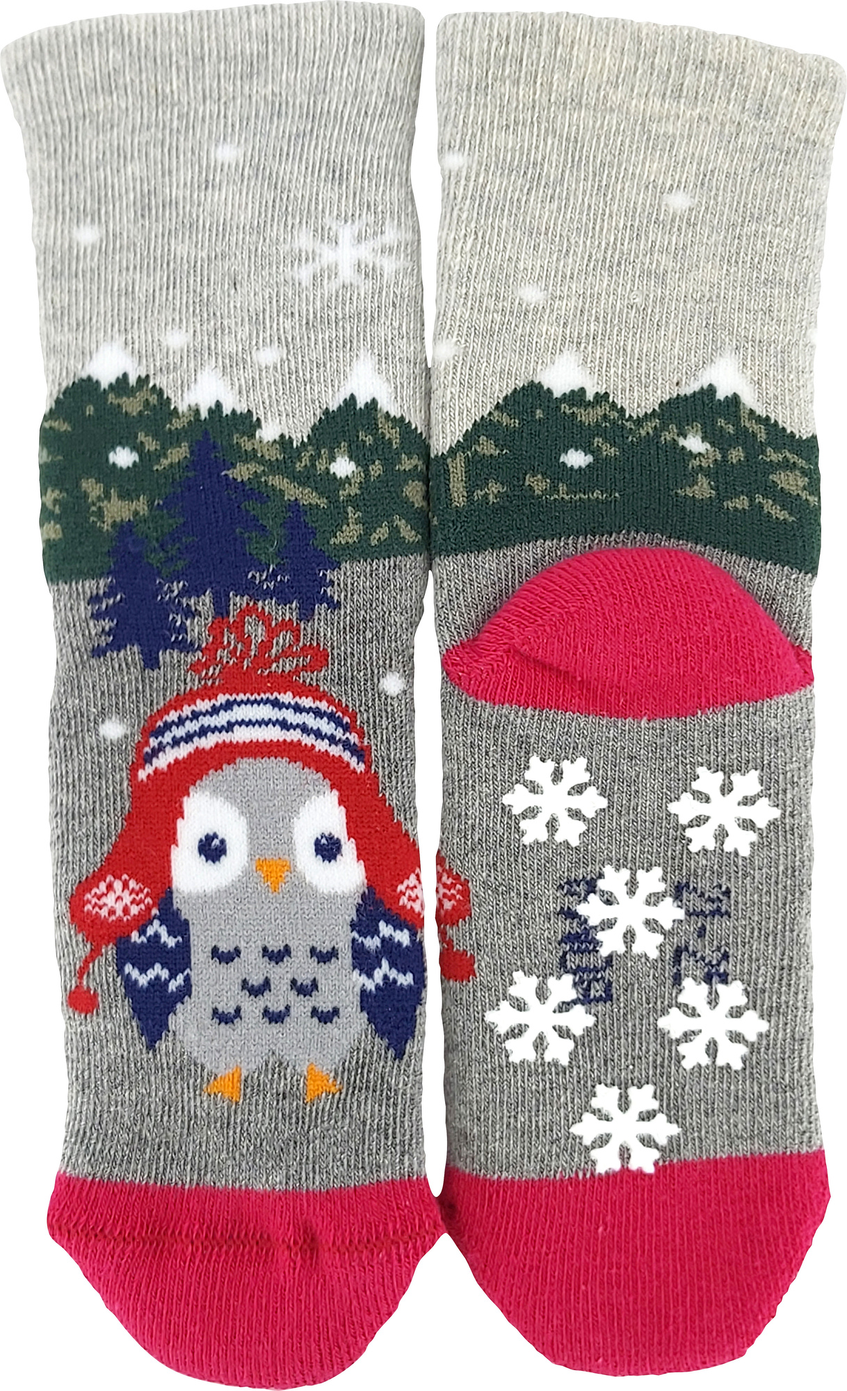 Kojenecké ponožky Boma® HUHIK ABS pro naše nejmenší zákazníky. Každá ponožka má obrázek roztomilé sovičky v zimní čepičce. Obrázkové ponožky mají jemný lem. Silnější ponožky jsou z bavlněného froté s podílem elastanu, takže jsou příjemné na pokožce ale zároveň jsou pružné a dobře si drží tvar....