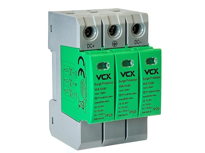 Technicky vyspělá přepěťová ochrana (svodič přepětí) VCX T2-DC třída T2 (C) 3P 1500V nabízí špičkovou ochranu před škodlivými přepětími, které mohou vzniknout v důsledku úderů blesků nebo jiných přechodných jevů v elektrické síti. Díky pokročilé technologii a kvalitním komponentům chrání váš fotovoltaický systém před nebezpečnými výkyvy napětí, čímž zajišťuje jeho dlouhou životnost a spolehlivý provoz.