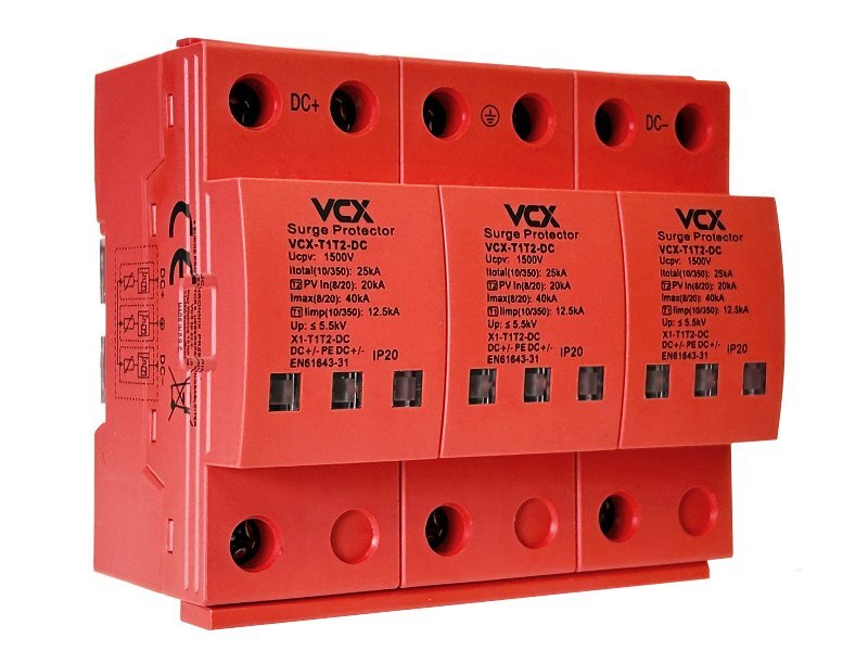 Přepěťová ochrana VCX DC třída T1+T2 (B+C) 3P 1500V 12.5kA RED