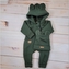 Oteplený dětský overal bez šlapek s kapucí + čepička, 2D, khaki, vel. 86; 86 (12-18m)