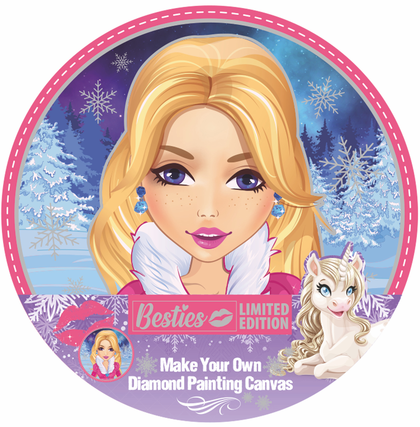 Diamantový obrázek na plátně, kulatý 30 cm - slečna v zimě