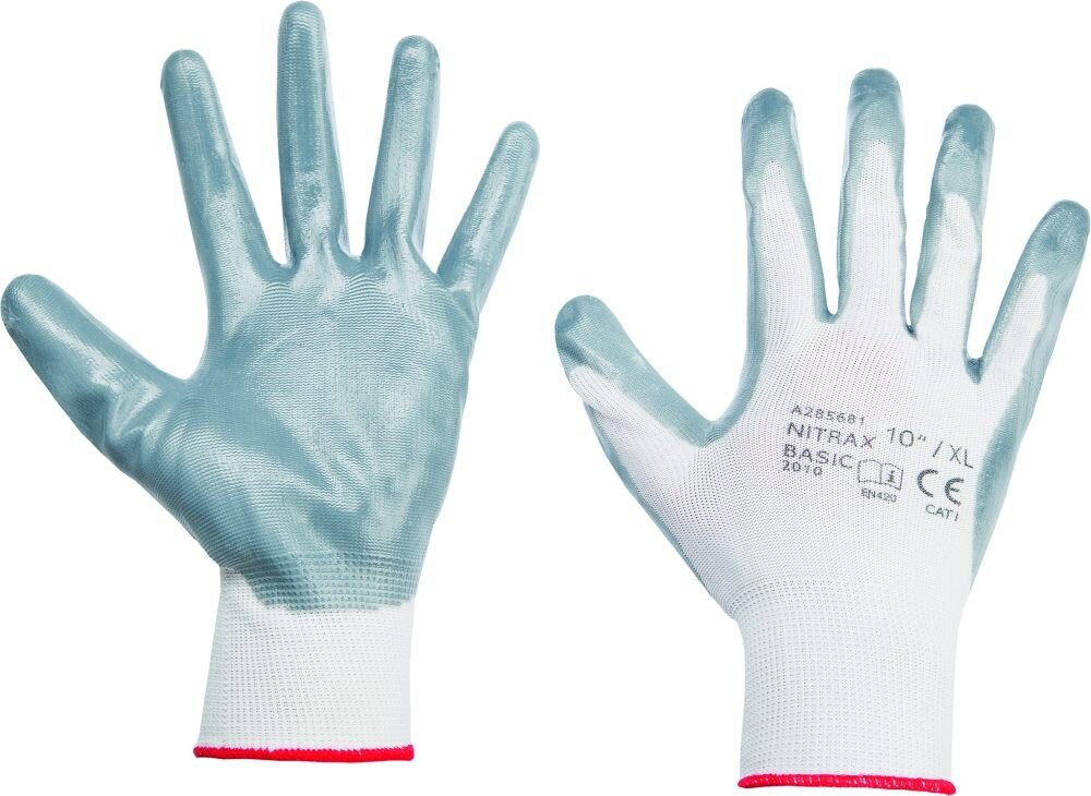 Pracovní rukavice - úplet máčený v nitrilu.Šedý pletený nylon/PE máčený v šedém nitrilu. Polyesterový úplet. przeczytaj całość