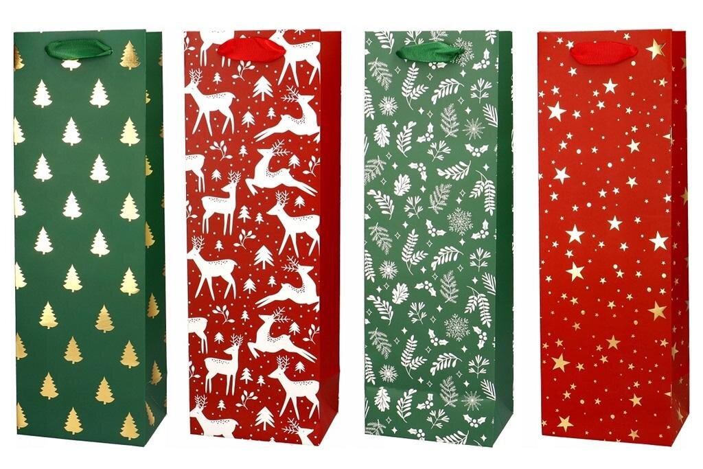 Torba prezentowa na butelkę 12x36x8,5cm gramatura 210gsm zdobiona Hot StampingiemMix wzorów, produkt wysyłany losowo, cena za 1 sztukę. przeczytaj całość