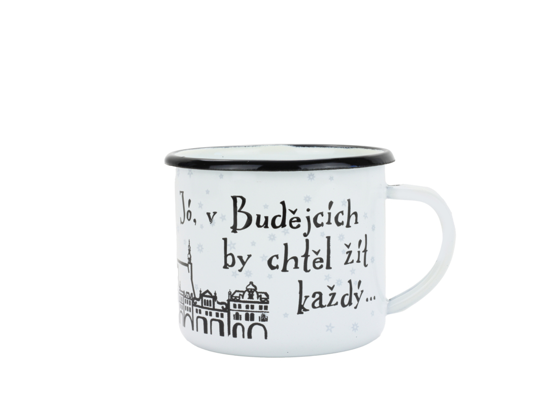 BELIS Smaltovaný hrnek 8 cm/0,35l, bílý "ČB/město" v krabičce
