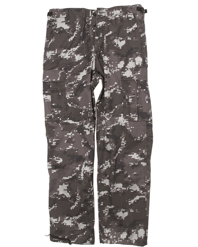 Pohodlné, lehké a pevné kalhoty stylu US BDU Ranger od firmy Mil-Tec.Obvod pasu je z části nastavitelný pomocí stahovacích pásek na úpravu velikosti pasu.Vlastnosti:• stahovací pásky na úpravu velikosti pasu• zapínání rozparku na knoflíky• dolní stahování nohavic• 2 boční kapsy pro ruce• 2 velké stehenní cargo kapsy s patkami• 2 zadní kapsy s patkami
