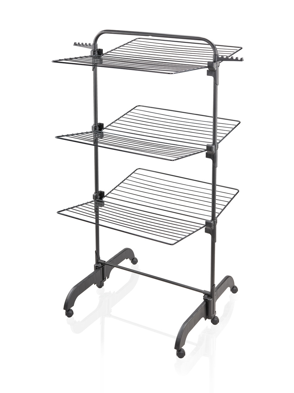 Patrový sušák na prádlo pro flexibilní využití prostoru.- 3 patra na sušení- lze individuálně složit pro použití na polovinu strany- vetně 6 koleček a držáku na 10 ramínek na šaty- 42 m sušící plochy - až na 4 pračky prádla- záruka 5 let- nově v designové černé barvě;Patrový sušiak na bielizeň...
