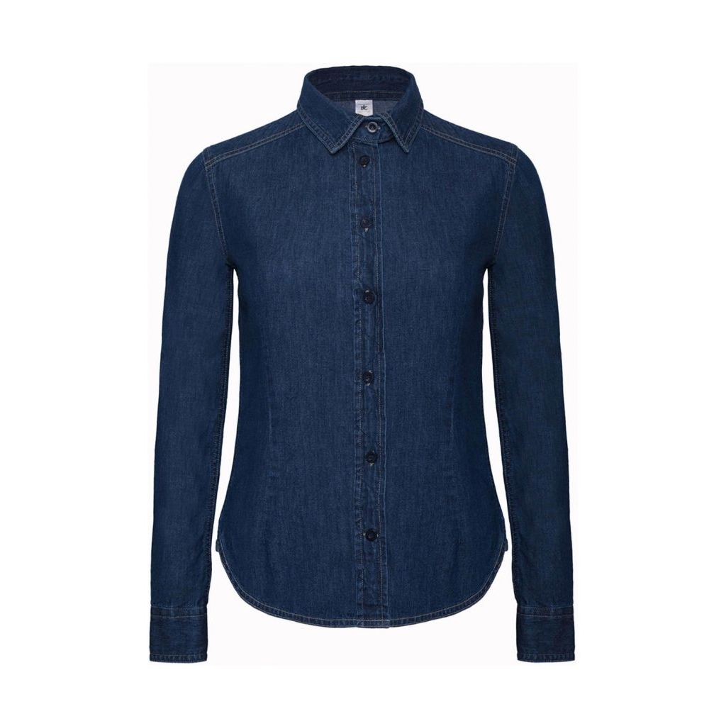 Stylová dámská džínová košile od firmy B&C. Má límec s měkkým lemováním, na zadní straně límce ozdobné prošití v barvě košile, napůl skrytou légu s knoflíky ve stejné barvě, trojité ozdobné prošití na krku a prsou. przeczytaj całość