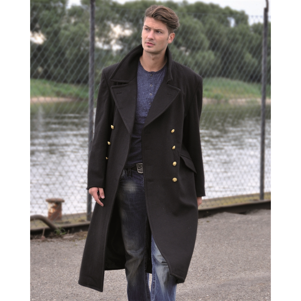 Vlněný kabát ve stylu kabátů německého námořnictva.Vlastnosti:• s podšívkou• dvouřadé zapínání• velké knoflíky s motivem kotvy• 2 kapsy s klopou• 2 vnitřní kapsy• zadní rozparek przeczytaj całość