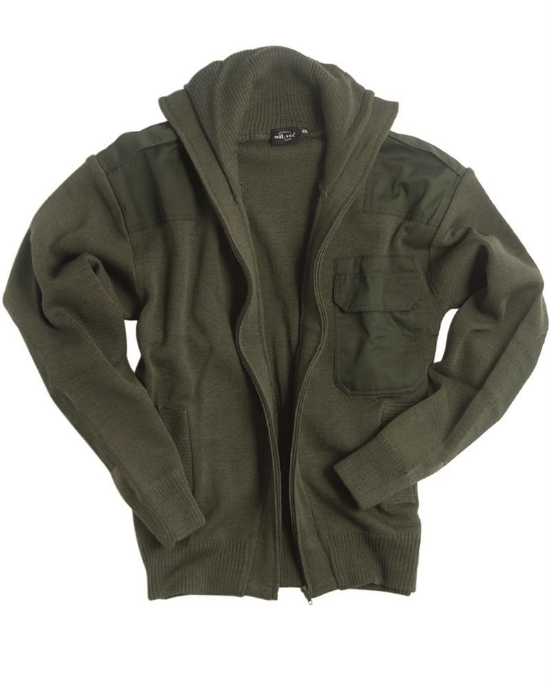 Hřejivý vlněný svetr do chladného počasí.Díky vlně výborně izoluje a absorbuje vlhkost těla, tím udržuje pokožku suchou. Má zapínání na zip po celé délce, vyztužené ramena a předloktí, zdvojený materiál límce zaručuje jeho pevnost.Vlastnosti:• 2 boční kapsy pro ruce• náprsní kapsa s patkou na suchý zip• vysoký límec u krku• nárameníky na suchý zip• dvojité náplety na manžetách, spodním lemu a bočních kapsách
