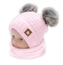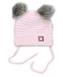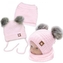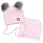 Zimní pletená čepice Star s fleecem a chlupáčkové bambulky+komínek 2D sada, růžová; 98-104 (2-4r)
